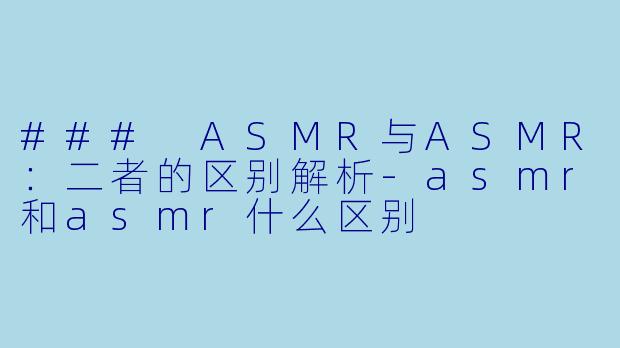 ### ASMR与ASMR:二者的区别解析_asmr和asmr什么区别